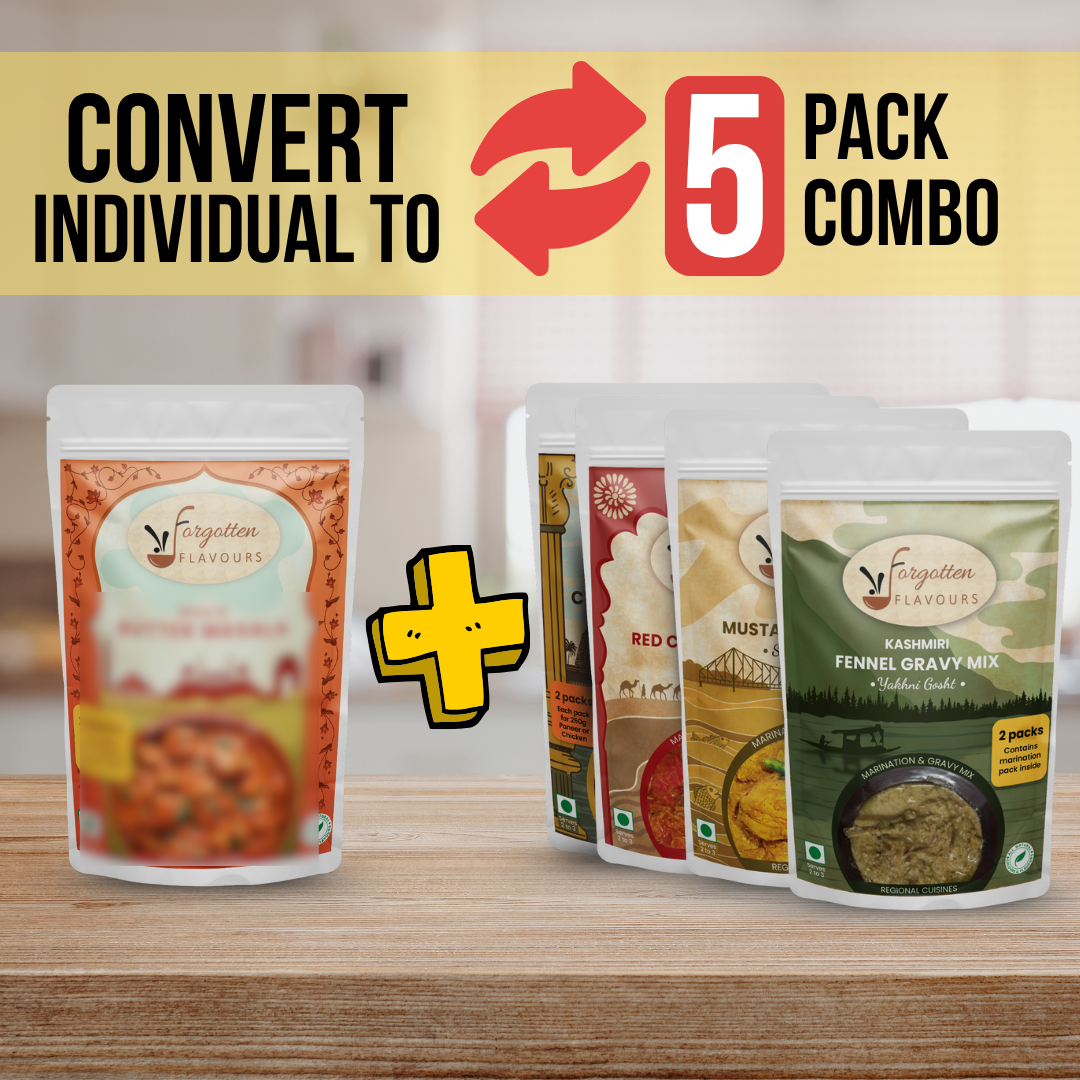 - Single Pack Chettinad → becomes 1 × Chettinad, 1 × Lal Maans, 1 × Yakhni, 1 × Shorshe, 1 × Butter Masala.